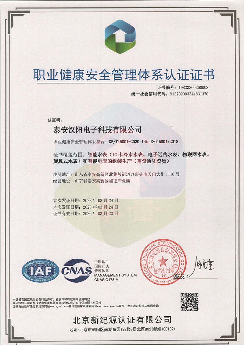 職業(yè)健康管理體系認(rèn)證證書(shū)